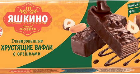 Вафли Яшкино глазированные хрустящие с орешками доставка