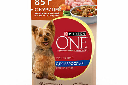 Корм для собак purina one® мини, с курицей, морковью и фасолью, в подливе, влажный доставка