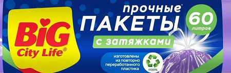 Пакеты для мусора Big City с затяжками, лиловые, 60 л доставка