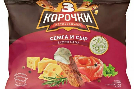 Сухарики Три корочки с сыром, семгой и соусом тартар доставка