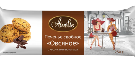 Печенье сдобное Amelie Овсяное с кусочками шоколада доставка