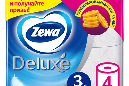 Туалетная бумага Zewa Deluxe Белая, 3 слоя, 4 рулона доставка