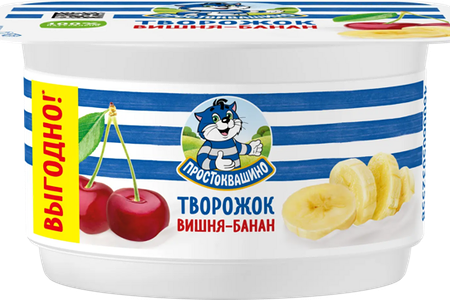 Десерт творожный Простоквашино Вишня-банан доставка
