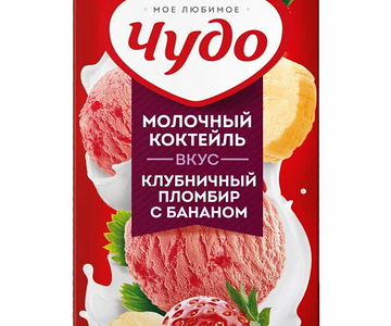 Молочный коктейль Чудо Клубника, пломбир и банан доставка