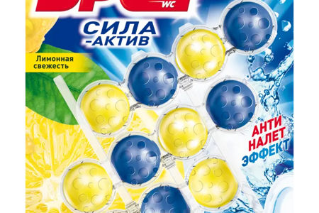 Блок для унитаза Bref Сила-Актив Лимонная свежесть, 3х доставка