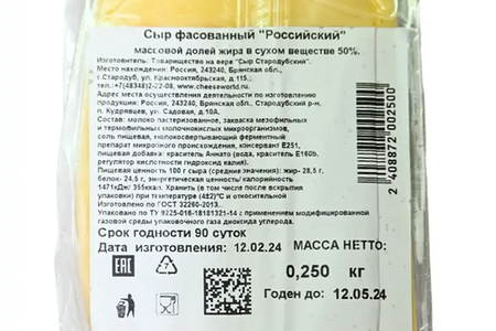 Сыр Тендер Российский, 45% доставка