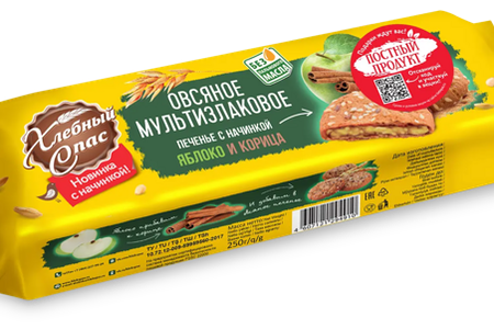 Печенье овсяное Хлебный спас Мультизлаковое с яблоком и корицей доставка