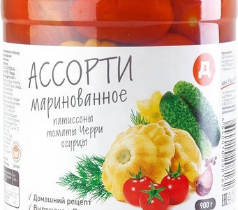 Ассорти овощное Д Круглое Лето патиссоны-черри-огурцы маринованные доставка