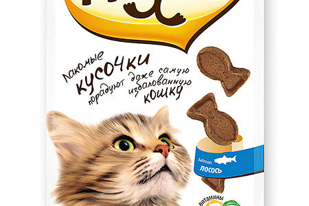 Лакомство для кошек Мнямс "Лакомые кусочки" в форме рыбок со вкусом лосося 1шт доставка