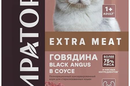 Влажный корм для кошек Мираторг Winner Extra Meat Говядина Black Angus в соусе доставка
