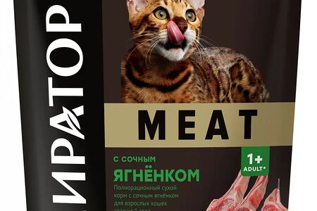 Сухой корм Мираторг MEAT с сочным ягненком, для любых кошек старше 1 года, полнорационный 750 гр доставка