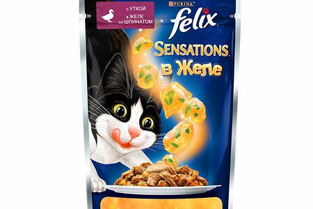 Корм консервированный для взрослых кошек FELIX Sensations с уткой в желе со шпинатом доставка