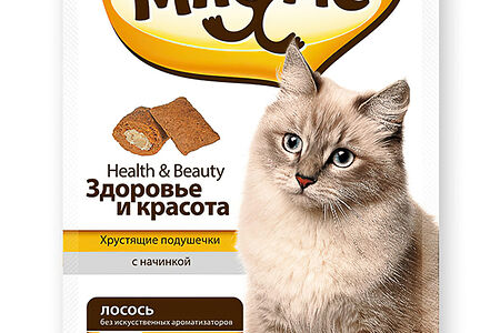 Хрустящие подушечки для кошек Здоровье и красота Мнямс с начинкой Лосось доставка