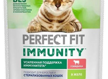 Влажный корм Perfect Fit Immunity для иммунитета кошек, говядина в желе и семена льна, 75г доставка