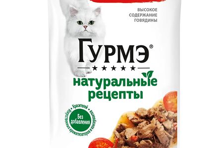 Влажный корм Гурмэ Натуральные рецепты для кошек, тушеная говядина с томатами доставка