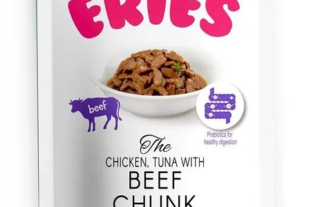 Влажный корм Pettric ERIES для любых кошек Говядина с курицей и тунцом, кусочки в соусе 85г доставка