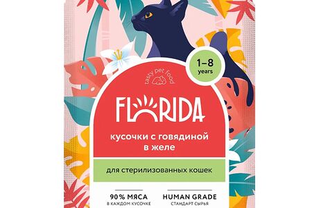Влажный корм FLORIDA кусочки с говядиной в желе доставка