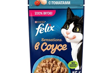 Влажный корм Felix Sensations для взрослых кошек, с треской в соусе с томатами 75 г доставка