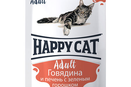 Happy Cat Говядина с печенью и горошком нежные кусочки в желе доставка