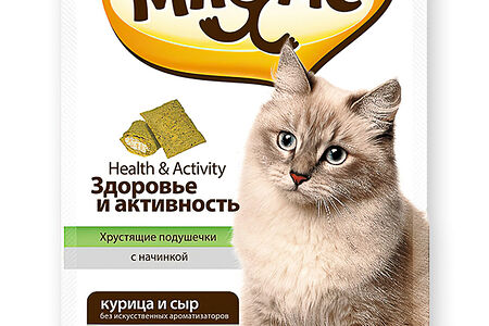 Хрустящие подушечки для кошек Здоровье и активность Мнямс с начинкой Курица и сыр доставка