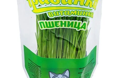 Лакомство для любых кошек Свежая травка Травинка-витаминка Пшеница в квадратном горшочке 7*7*8 см 150 гр доставка