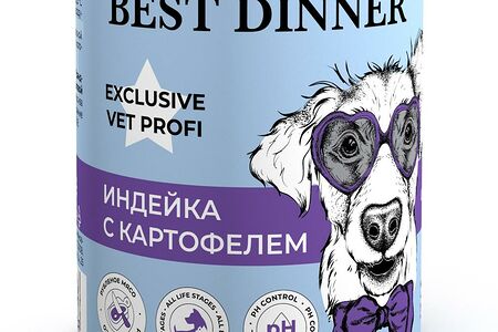 Консервированный корм для собак Best Dinner Exclusive Vet Profi Urinary с профилактикой мочекаменной болезни индейка с картофелем 340 г доставка