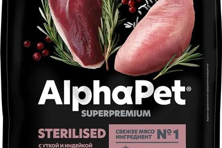 Сухой корм AlphaPet Superpremium для для взрослых стерилизованных кошек и котов Утка и индейка доставка