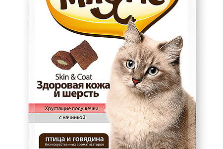 Мнямс Хрустящие подушечки "Здоровая кожа и шерсть" для кошек Говядина и птица доставка