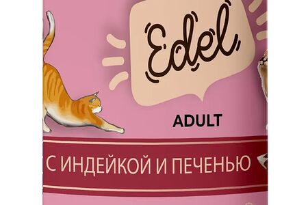 Влажный корм Edel, полнорационный, для любых кошек, нежные кусочки в соусе с индейкой и печенью 400гр доставка