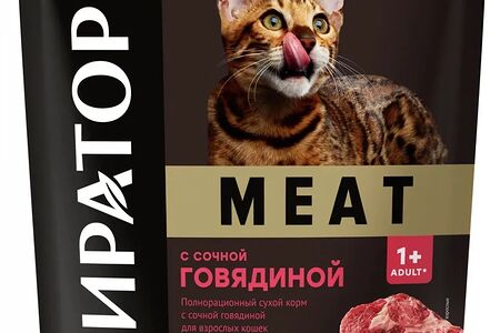 Сухой корм Мираторг MEAT с сочной говядиной, для любых кошек старше 1 года, полнорационный 750 гр доставка