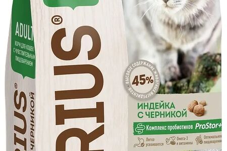 Sirius Sirius для взрослых кошек с чувствительным пищеварением Индейка с черникой 1,5 кг доставка