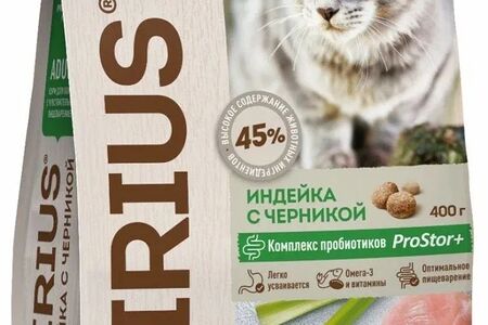 Корм Sirius Premium для взрослых кошек с чувствительным пищеварением Индейка с черникой доставка