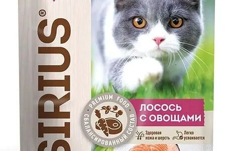 Влажный корм Sirius Adult с лососем и овощами кусочки в соусе для взрослых кошек доставка