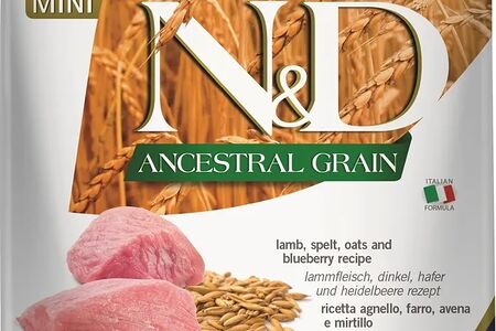 Корм низкозерновой Farmina N&d ancestral grain Lamb & Blueberry Puppy mini для щенков мелких пород ягненок и черника доставка