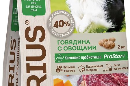 Сухой корм Sirius для любых собак, говядина и овощи 2 кг доставка