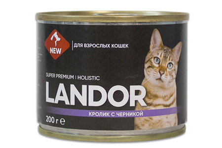 Lаndor консервы для взрослых кошек кролик с черникой 200 г доставка