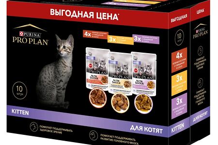 Влажный корм PRO PLAN® HEALTHY START для котят с говядиной в соусе, с индейкой в соусе и с курицей в желе 85 г х 10 шт. доставка
