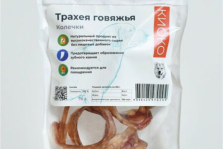Киоко Трахея говяжья сушеная лакомство для собак (резаная колечки) доставка