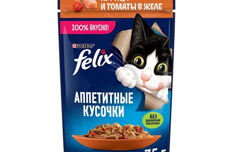 Корм влажный для кошек Felix Аппетитные кусочки в желе, курица и томат, 75 г доставка