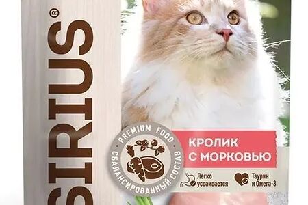 Влажный корм для взрослых кошек SIRIUS Premium Adult полнорационный кусочки в соусе кролик с морковью, 85 г доставка