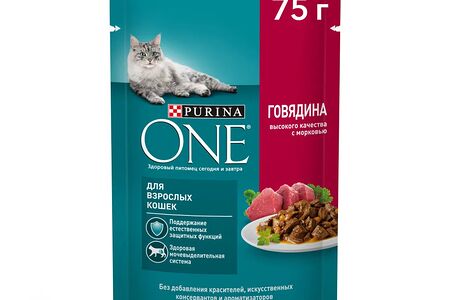 Влажный корм Purina ONE для взрослых кошек, с говядиной и морковью, пауч, 75г доставка