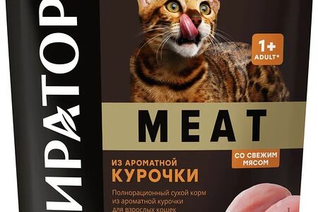 Корм сухой для взрослых кошек старше 1 года из ароматной курочки Мираторг Meat доставка