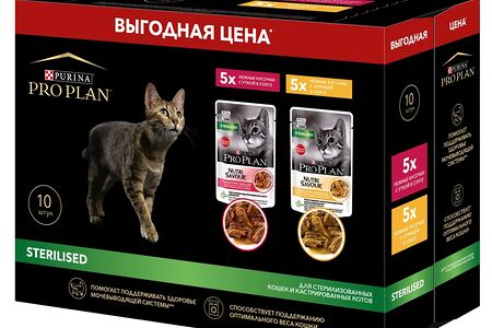 Влажный корм PRO PLAN® Adult Sterilised MAINTENANCE для взрослых стерилизованных кошек и кастрированных котов с уткой в соусе, с курицей в соусе 85 г х 10 шт. доставка