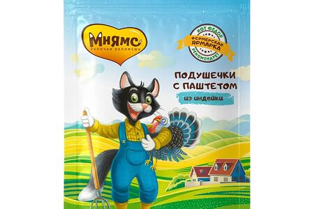 Лакомство Мнямс для кошек хрустящие подушечки с паштетом из индейки Кот Федор "Фермерская Ярмарка" 50г доставка