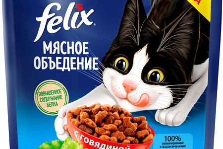 Сухой корм Felix Мясное объедение для взрослых кошек, с говядиной 600 г доставка