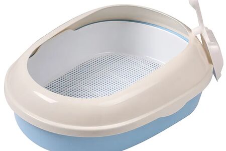 Туалет для кошек овальный с бортом (совок и сетка в комплекте), голубой, 500*370*170мм ТРИОЛ доставка