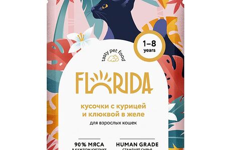 Florida Florida паучи для взрослых кошек: кусочки с курицей и клюквой в желе 85 г доставка