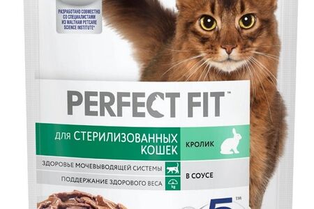 Влажный полнорационный корм PERFECT FIT™ для стерилизованных кошек с кроликом в соусе, 75г доставка