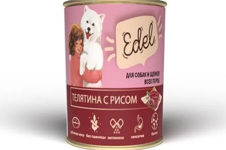 Влажный корм Edel для любых собак и щенков, телятина с рисом 850гр доставка