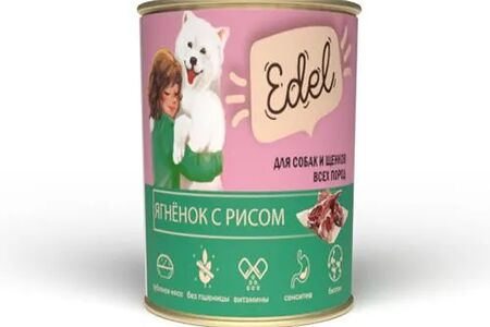 Влажный корм Edel для любых собак и щенков, ягнёнок с рисом 850гр доставка